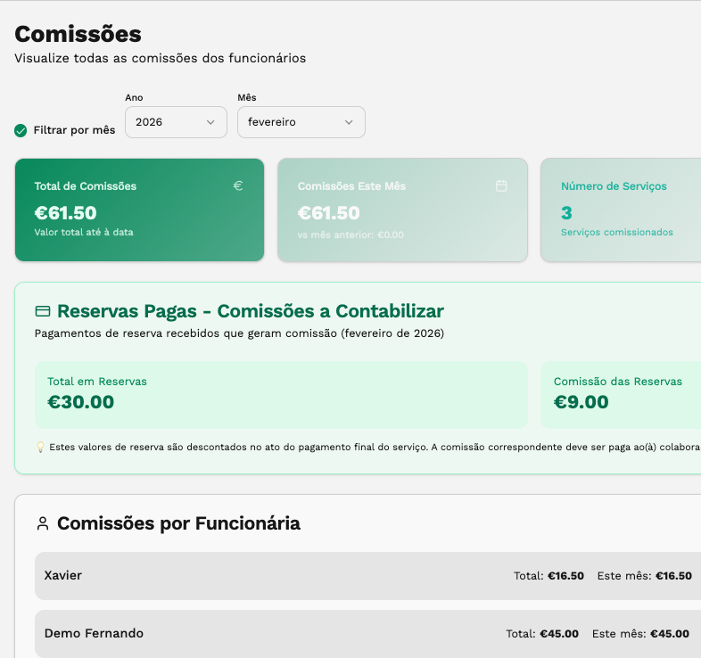 Caso tenhas equipa em regime de comissão, aluguer de espaço ou contrato de trabalho consegues gerir automáticamente os pagamentos à tua equipa.